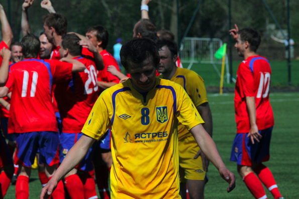 Удвоил преимущество нашей команды Дмитрий Копий. Украинцы провели быструю контратаку, в результате которой Арсланов убежал по левому флангу от опекуна и выполнил идеальную передачу на украинского бомбардира. Дмитрию оставалось только не промахнуться по пустым воротам, но он решил подержать в напряжении своих партнеров и болельщиков, прибывших на стадион поддержать команду. Копий уложил на замахе вратаря и только после этого пробил в угол ворот. Точку в матче поставил Александр Сеськин, который избежал оффсайдной ловушки, вышел один на один с вратарем сборной Италии, обыграл его и отправил мяч в пустые ворота. Первый гол Сеськина на турнире, который позволил ему избавиться от надокучливых издевок своих партнеров! :).jpg)